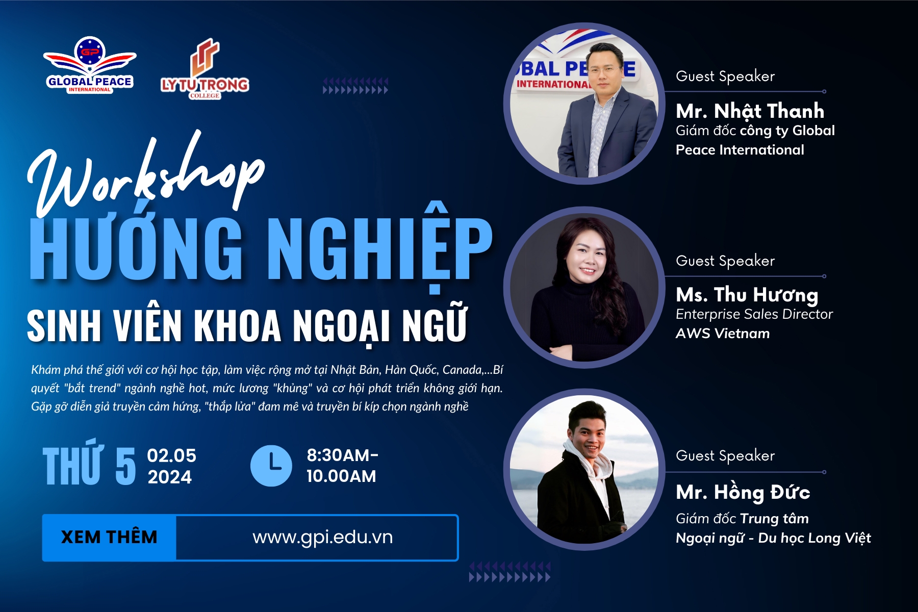 Hiểu được điều này, Trường Cao đẳng Lý Tự Trọng phối hợp cùng Global Peace International tổ chức Workshop định hướng nghề nghiệp với mong muốn hỗ trợ các bạn sinh viên Ngoại ngữ định hướng tương lai, trang bị kiến thức và kỹ năng cần thiết để thành công trong sự nghiệp.